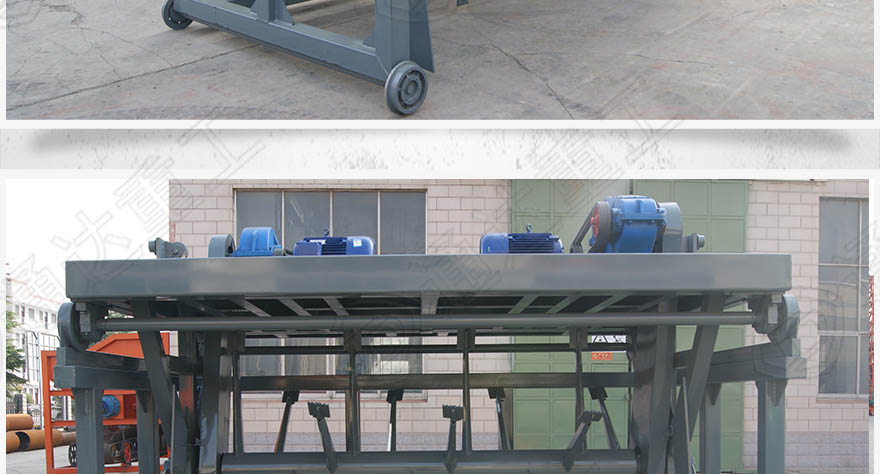 5.轉(zhuǎn)移車:該裝置是由行走電機(jī)、傳動齒輪、傳動軸、行走輪等組成,它為翻堆機(jī)換槽提供臨時(shí)運(yùn)載工具。