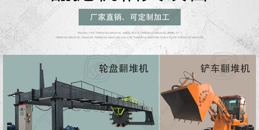 槽式翻拋機(jī)用于畜禽糞便、污泥垃圾、糖廠濾泥、糟渣餅粕和秸桿鋸屑等有機(jī)廢棄物的發(fā)酵翻堆,廣泛應(yīng)用于有機(jī)肥廠、復(fù)混肥廠、污泥垃圾廠、園藝場以及雙孢菇種植廠等的發(fā)酵腐熟和去除水分作業(yè)。