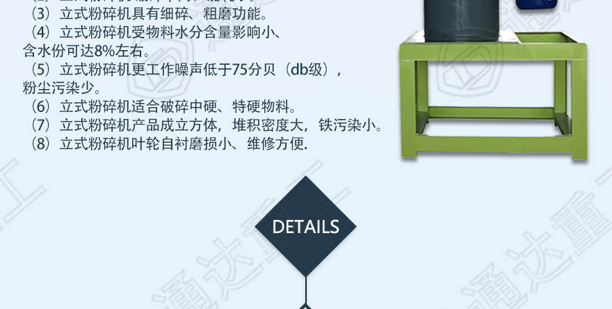 • 立式粉碎機是在吸取國內(nèi)外細碎設(shè)備基礎(chǔ)上,優(yōu)化設(shè)計而成的一種無篩條、可調(diào)式細碎設(shè)備,可廣泛適用于選礦設(shè)備的主流設(shè)備之一。可用于混合料,石膏,煤矸石,礦渣,銅礦石等各種物料的終粉碎·也是復(fù)混肥行業(yè)普遍使用的粉碎設(shè)備之一,適用于原料及返料的粉碎·尤其是對于含水率高的物料適應(yīng)性強,不易堵塞,下料順暢。