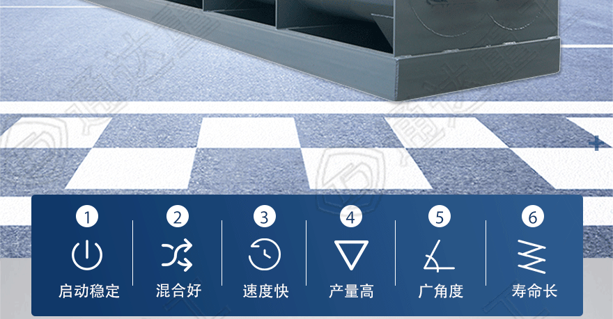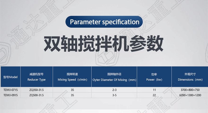 (2)雙軸濕式攪拌機采用減速器傳動,轉動平穩(wěn),噪音低。