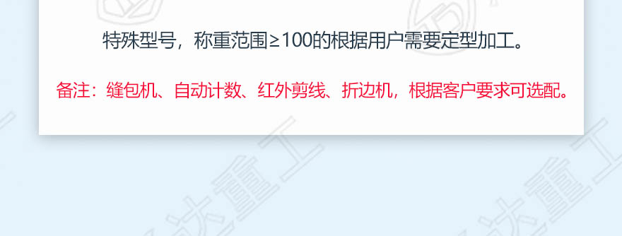 產(chǎn)品簡(jiǎn)介: 自動(dòng)定量包裝秤專為定量包裝設(shè)計(jì),分為三斗包裝秤、雙斗包裝秤和單斗包裝秤。采用一體化結(jié)構(gòu),秤高度小,結(jié)構(gòu)緊湊,外觀新穎,安裝簡(jiǎn)單,維護(hù)方便。系統(tǒng)定量精度在千分之二。